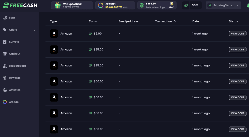I can speak to Freecash’s legitimacy from personal experience—I’ve earned over $449 via the platform, and $420 of that came in the form of free Amazon gift cards.