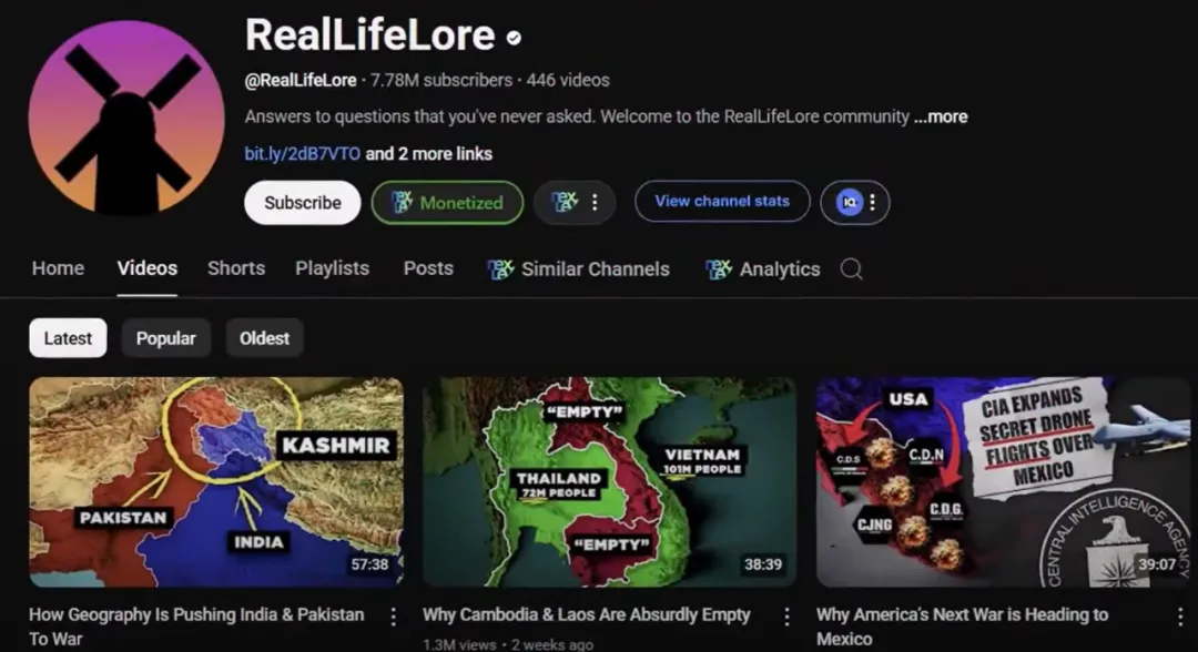 Geog Globe Tales is a major Shorts channel in this field, with over 1 million subscribers, and its videos can achieve 44 million views. It also uses maps, text, and zoom effects in its videos, and adds some graphics proven to keep viewers engaged.