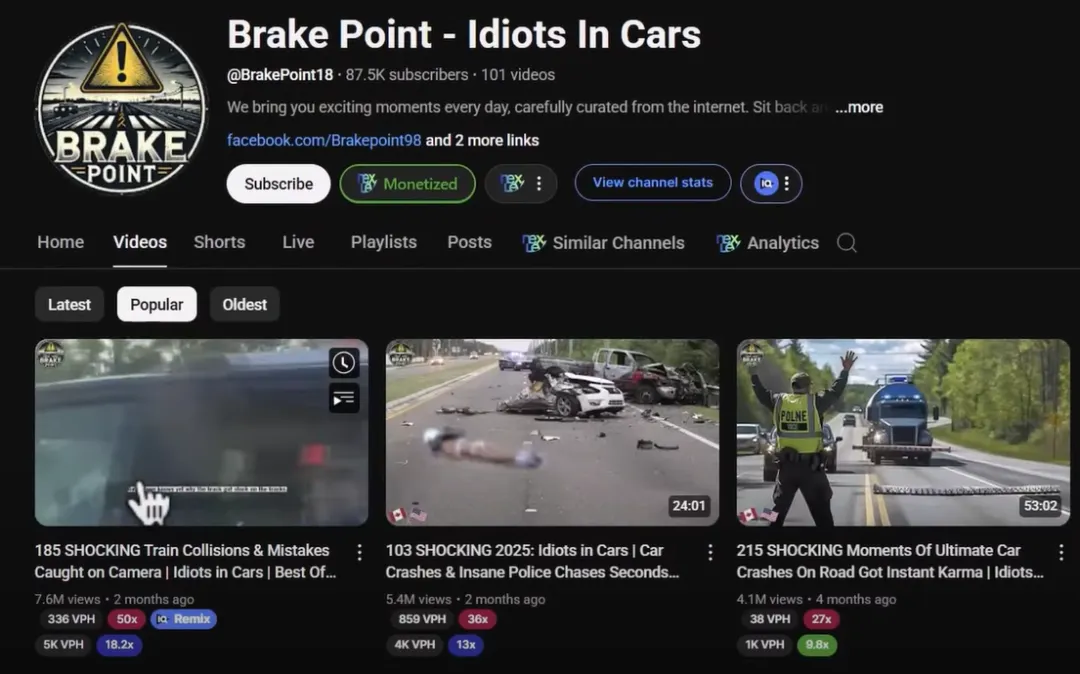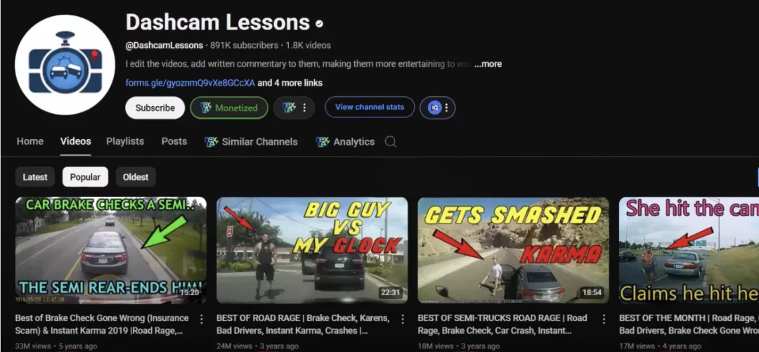 Other channels include in Cars , which focuses on road rage and accidents and has amassed 42 million views in less than a year. Additionally, you can try this niche on YouTube Shorts, such as Mad Streets , which shares popular road rage clips and can get 80 million views per video.