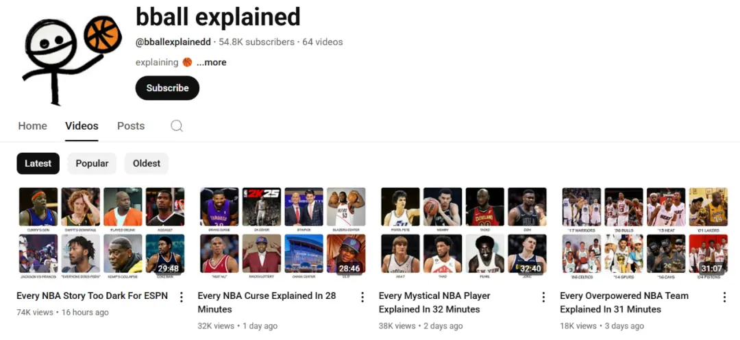 If you want to enter this field, you first need to determine whether the topic should be broader or more niche. For example, there’s a new channel in the basketball field called Bball Explained, which, just two months after its launch, already has over 54,800 subscribers and 6.23 million views.