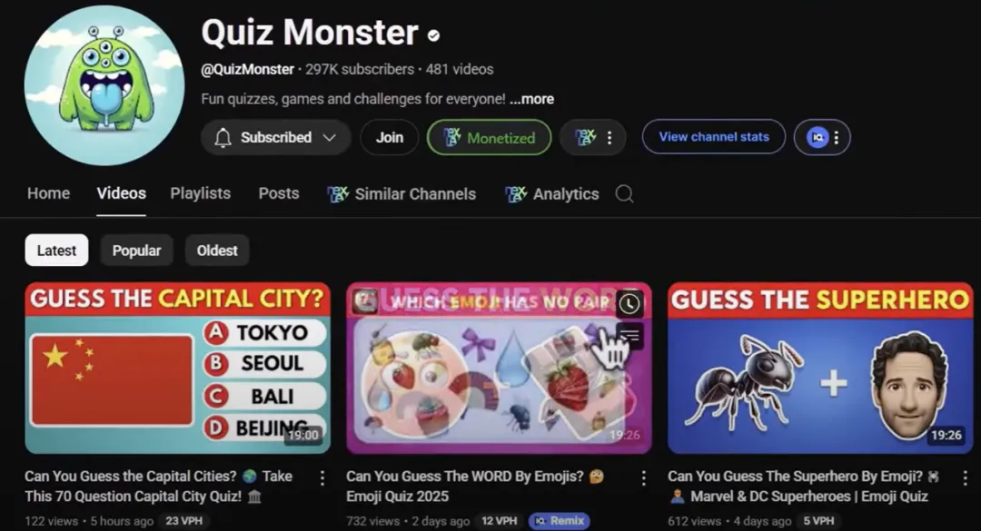 Quiz Monster is a very popular channel. Its Q&A videos are very interesting, and it can earn around $3,000 per month.