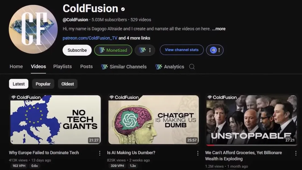 Cold Fusion is also a general documentary channel with many interesting topics, ranging from economics to technology, and has already had over 5 million subscribers.