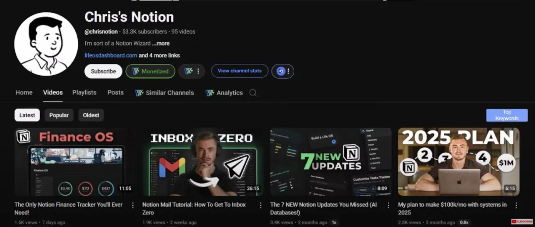 This field has great potential, and making money doesn’t solely rely on advertising revenue. Take Chris’s Notion for example. He creates tutorials for the popular productivity tool Notion and can earn six figures a year. He mentioned in a video that he made over $170,000 just from selling Notion templates. By looking at his video description, you can find that his sources of income are diverse: selling templates on Gumroad, accepting client cooperation appointments, selling courses on School, etc.