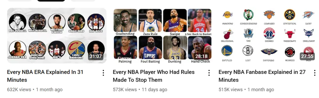 He creates NBA-related content using this new type of commentary style, with thumbnails following a fixed template that can be easily created using free tools like Canva. Moreover, if you watch his videos, you’ll find that the editing is also very simple.