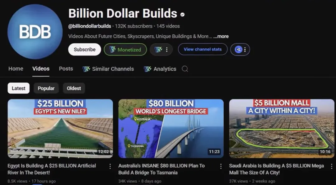Billion dollar Builds is a channel worth watching in this field, showing viewers large-scale projects around the world, from large shopping malls to large stadiums.