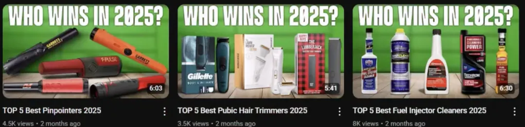 This field is quite interesting – some channels are even reviewing tech products they’ve never seen before, such as content like “Top 5 Best Bluetooth Receivers in 2025” and “Top 5 Best Mini Projectors in 2025”.