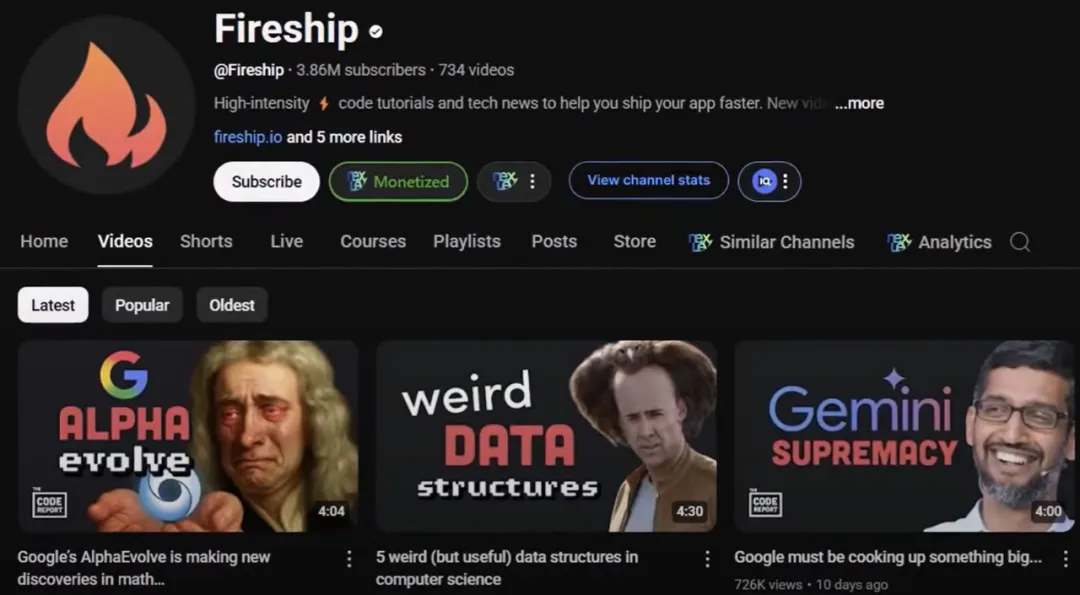 Programming is a complex skill, and if you can break it down into simple forms like Fire Ship , you can attract many viewers. These people have over 9 million monthly views and many money-making opportunities.