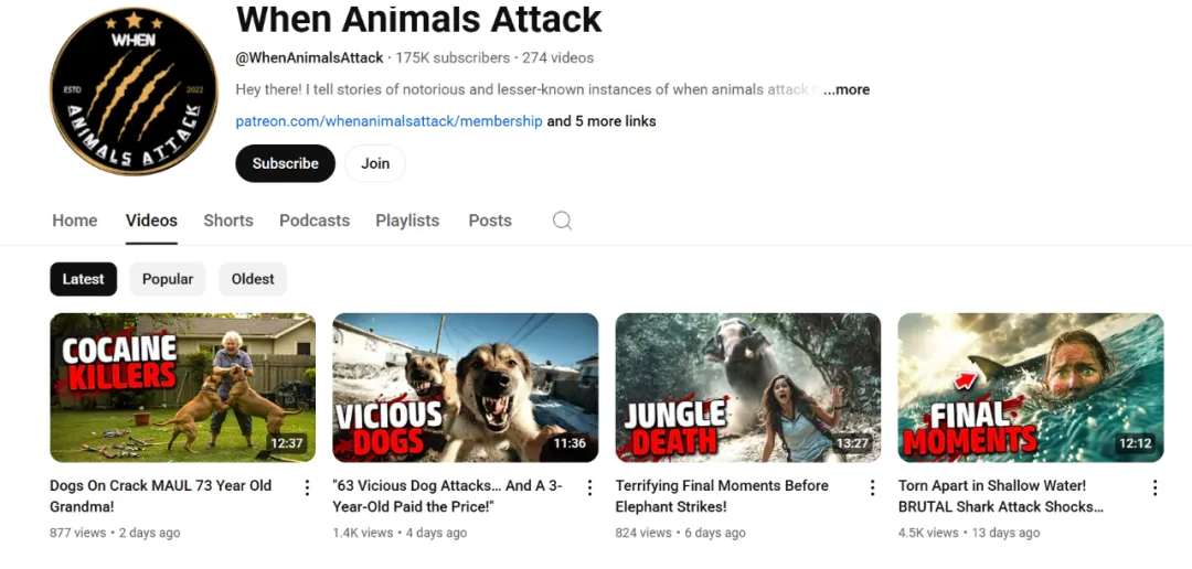 This is another terrifying realm that showcases animals attacking humans. When Animals Attack is a channel in this realm that shows the terrifying final moments of such incidents and also creates terrifying and surreal stories.