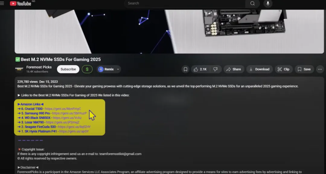 Then, right below the video, there are a bunch of affiliate links that directly take you to the Amazon pages of the products mentioned in the video. When someone buys something through these links, you can earn a commission.