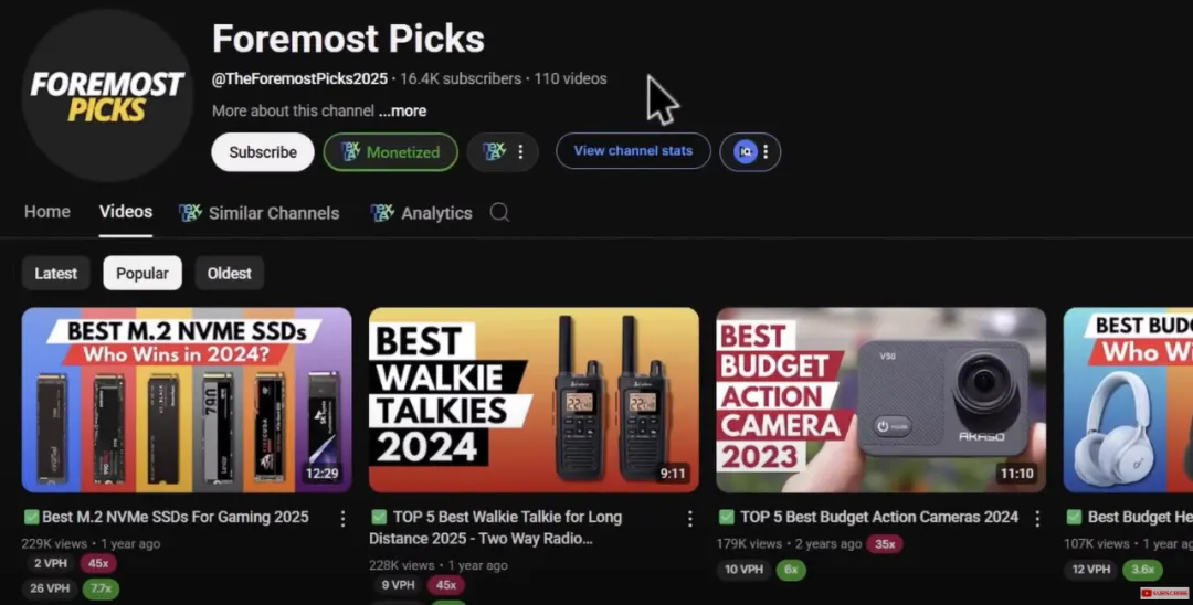 This field is not new, and there are already many successful old channels. The reason we tried is that we discovered new channels like Foremost Picks and thought they must be making a lot of money. If you watch one of their videos, you will see a mix of Promotion Videos and product demonstration videos.