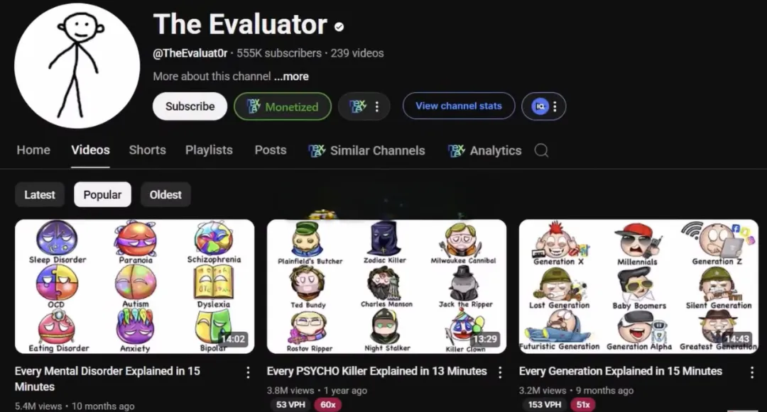 You can also create videos on popular topics, like the channel called The Evaluator, which covers any topic it finds interesting without a clear positioning.