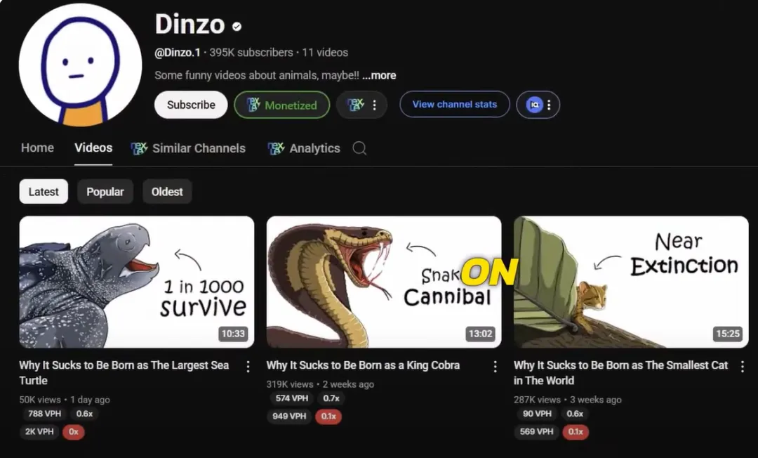 Denzo focuses on animals, and the videos he creates showcase the dark side of animals. He has many interesting topics, such as “Why being a flying snake is bad” and “Why being a lion is bad”, etc. They started creating content a year ago, and with only 11 videos, they already have nearly 400,000 subscribers.