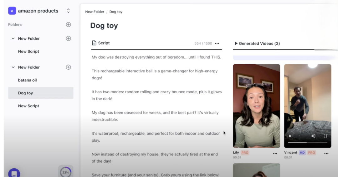 For example, Lily says, “My dog was so bored that it chewed everything up until I found this rechargeable interactive ball…” The voice sounds good. You can adjust it for each selected actor, and it’s free during the adjustment process until you’re satisfied.