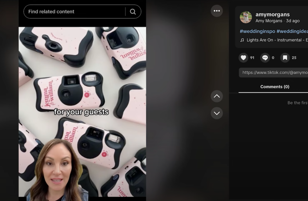 When I was researching AI UGC creators, I discovered these three channels, all of which are also AI UGC creators. Let me show you an example: “Don’t spend $700 on 46 disposable cameras for your guests, try this genius idea, print QR codes…” They are promoting a software called POV Camera.