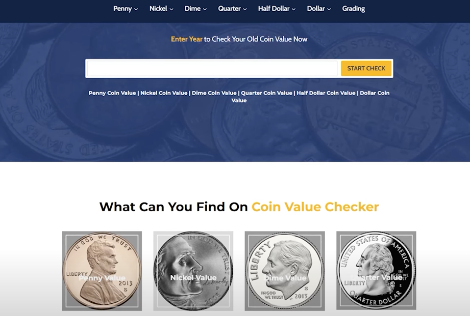 The third website is coinvaluechecker.com , which is quite interesting. It is essentially a traditional blog with many articles, and it also includes a free tool that allows you to check the value of coins.