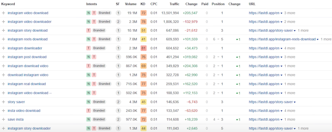 This idea is super simple, and to be honest, it might not be difficult to build either. With AI programming tools, we could probably quickly create a competing product. But before you start copying, I don’t recommend doing so. Let’s first take a look at its traffic data. This website has over 54 million monthly visitors, and a significant portion of its traffic comes from Google searches. As you might have guessed, it ranks for various keywords related to Instagram video downloads.