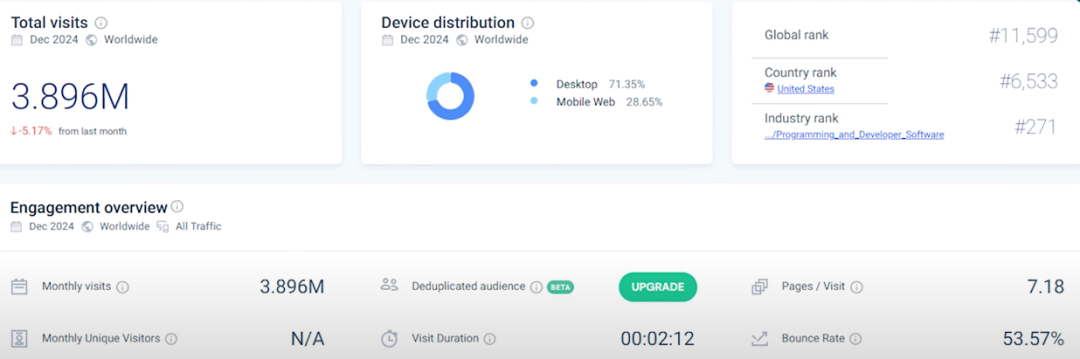 Some may ask, who would use an online stopwatch? I can think of several reasons, but more importantly, this website has 3.89 million visitors per month, and each visitor views an average of 7.18 pages, which is truly amazing.
