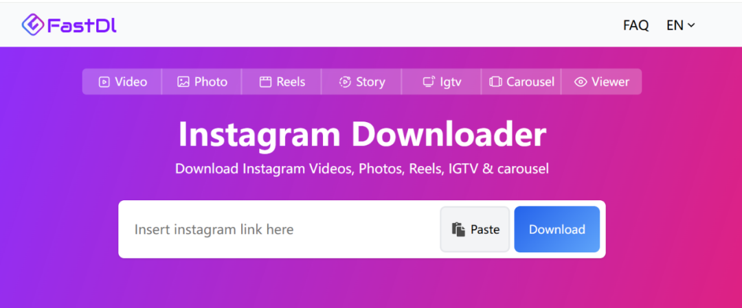The first tool website introduced here is: fastdl.app , which has a very simple function, allowing you to download videos from Instagram. That’s all it does: you input an Instagram link, and it downloads the video for you.